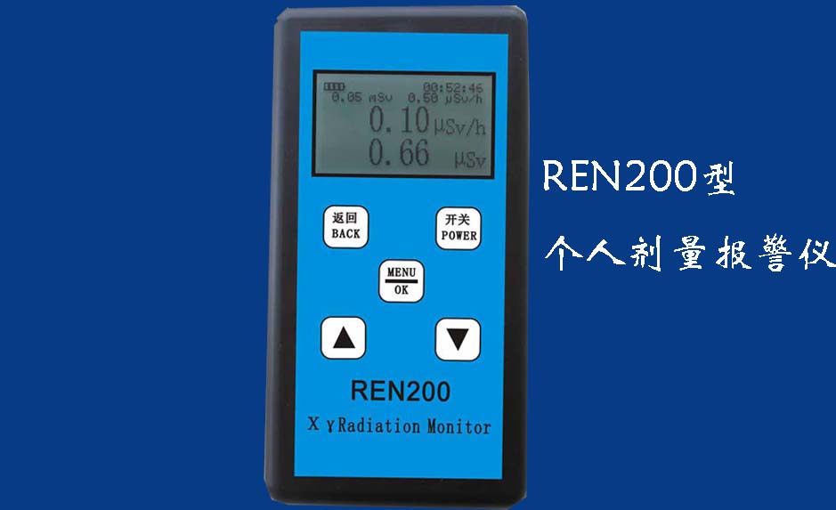 • REN200A 個(gè)人輻射報(bào)警儀REN200A型X、γ輻射個(gè)人劑量當(dāng)量HP(10)監(jiān)測(cè)儀(簡(jiǎn)稱:個(gè)人劑量報(bào)警儀)內(nèi)置高靈敏度蓋格計(jì)數(shù)管為探測(cè)器,主要用來(lái)監(jiān)測(cè)各種放射性工作場(chǎng)所的X、γ以及硬β射線的輻射,具有響應(yīng)快,測(cè)量范圍寬的特點(diǎn)。能顯示工作場(chǎng)所的劑量當(dāng)量率和累積劑量,更換電池時(shí),日期及累積數(shù)據(jù)能永久保存?蛇x配RenRiPersonal個(gè)人劑量管理軟件,該軟件可存儲(chǔ)多個(gè)人的歷史數(shù)據(jù),能記錄日累積、月累積、年累積、輻照時(shí)長(zhǎng)、計(jì)算平均劑量率、扣除或不扣除本底輻射,且以文字和圖譜的方式展現(xiàn)數(shù)據(jù)。廣泛應(yīng)用于核電站、加速器、鋼鐵、化工、同位素應(yīng)用、工業(yè)X、γ無(wú)損探傷、放射醫(yī)療、鈷源治療、γ輻照、放射性實(shí)驗(yàn)室、核設(shè)施周圍環(huán)境監(jiān)測(cè)等領(lǐng)域中的工作人員進(jìn)行個(gè)人安全防護(hù)監(jiān)測(cè)及放射性提示。&nb