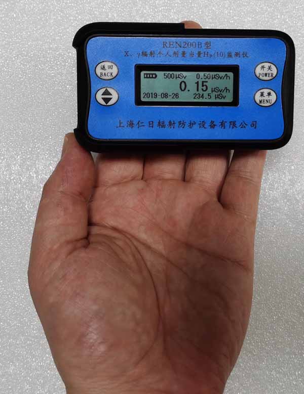 REN200B型X、γ輻射個人劑量當(dāng)量HP(10)監(jiān)測儀(簡稱:個人劑量報警儀)內(nèi)置高量程蓋格計數(shù)管為探測器,主要用來監(jiān)測各種放射性工作場所的X、γ以及硬β射線的輻射,具有較寬的測量范圍。能顯示工作場所的劑量當(dāng)量率和累積劑量,更換電池時,日期及累積數(shù)據(jù)能永久保存。可選配RenRiPersonal個人劑量管理軟件,該軟件可存儲多個人的歷史數(shù)據(jù),能記錄日累積、月累積、年累積、輻照時長、計算平均劑量率、扣除或不扣除本底輻射,且以文字和圖譜的方式展現(xiàn)數(shù)據(jù)。廣泛應(yīng)用于核電站、加速器、鋼鐵、化工、同位素應(yīng)用、工業(yè)X、γ無損探傷、放射醫(yī)療、鈷源治療、γ輻照、放射性實驗室、核設(shè)施周圍環(huán)境監(jiān)測等領(lǐng)域中的工作人員進行個人安全防護監(jiān)測及放射性提示。